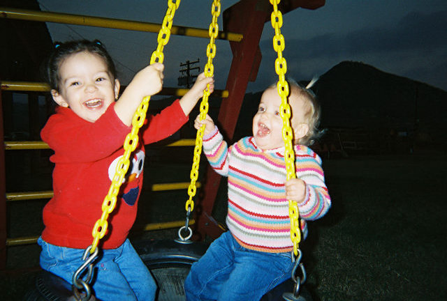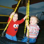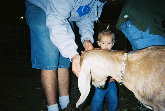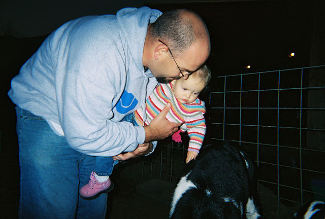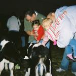 Jason & Paige and Ryan & Kaylin petting the baby cows. Date: 09/30/2002