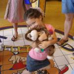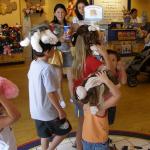at Build A Bear, Kaylin rubbing her bears heart for a smile
